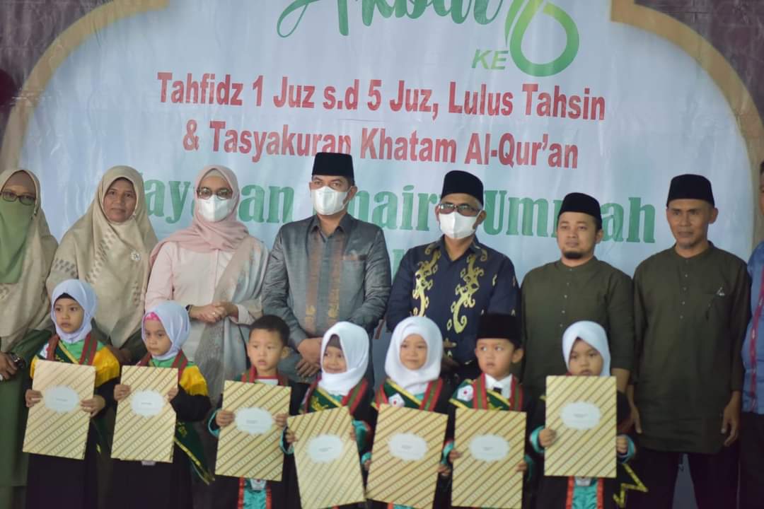Sawahlunto,Metrotalenta.online–Wali Kota Sawahlunto Deri Asta bersama Ketua TP-PKK Kota Sawahlunto Ny. Meivyta Deri Asta menghadiri wisuda tahfidz 1-5 juz, lulus tahsin dan tasyakuran serta khatam Al-Quran Yayasan Khairu Ummah Kota Sawahlunto, di Gedung Pertemuan Masyarakat (GPM) Talawi, Sabtu 28 Mei 2022.