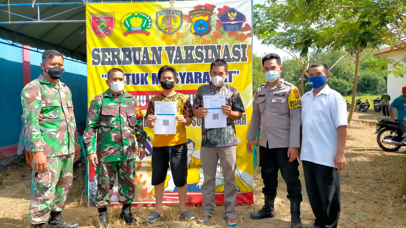 Vaksin Sinovac diberikan kepada warga masyarakat Desa Bakapas dari usia 18 tahun ke atas.”terang Danramil 1002-06/Barabai Kapten Inf Rudi Hartono.
