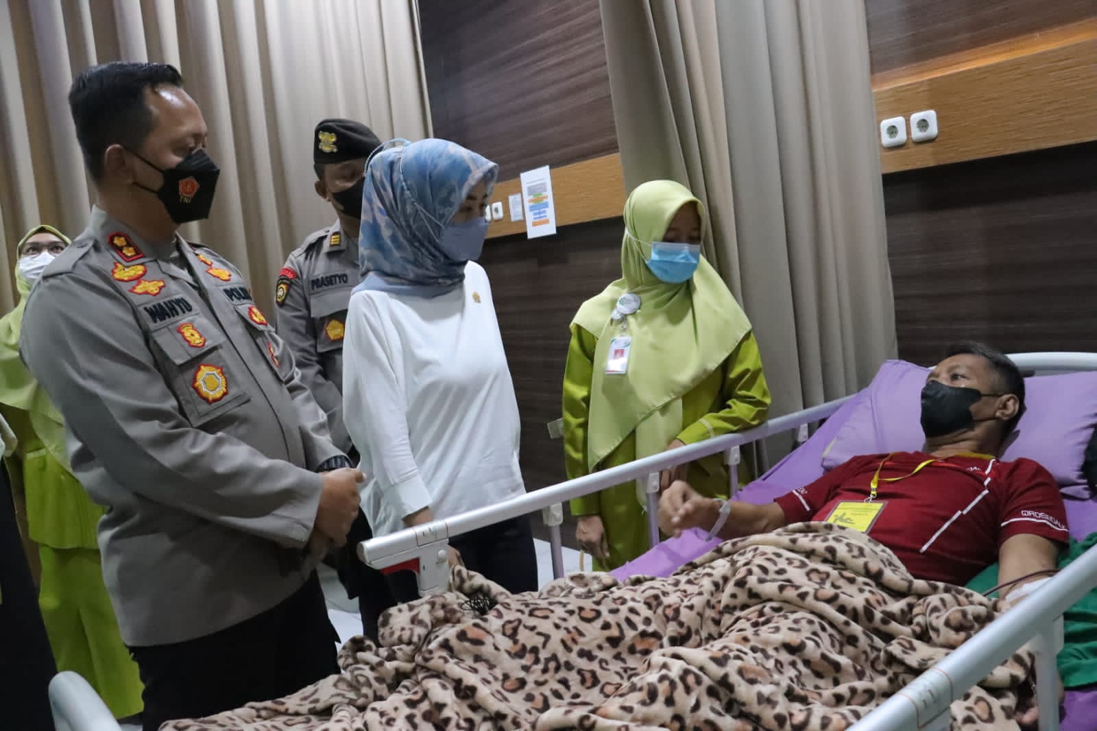 Dalam kesempatan tersebut, Kapolres bersama anggota DPR RI Eva Yuliana, menjenguk personel Polsek Bendosari Polres Sukoharjo, Aiptu Sugeng Triyono di Rumah Sakit Nirmala Suri, Rabu (27/7/2022).