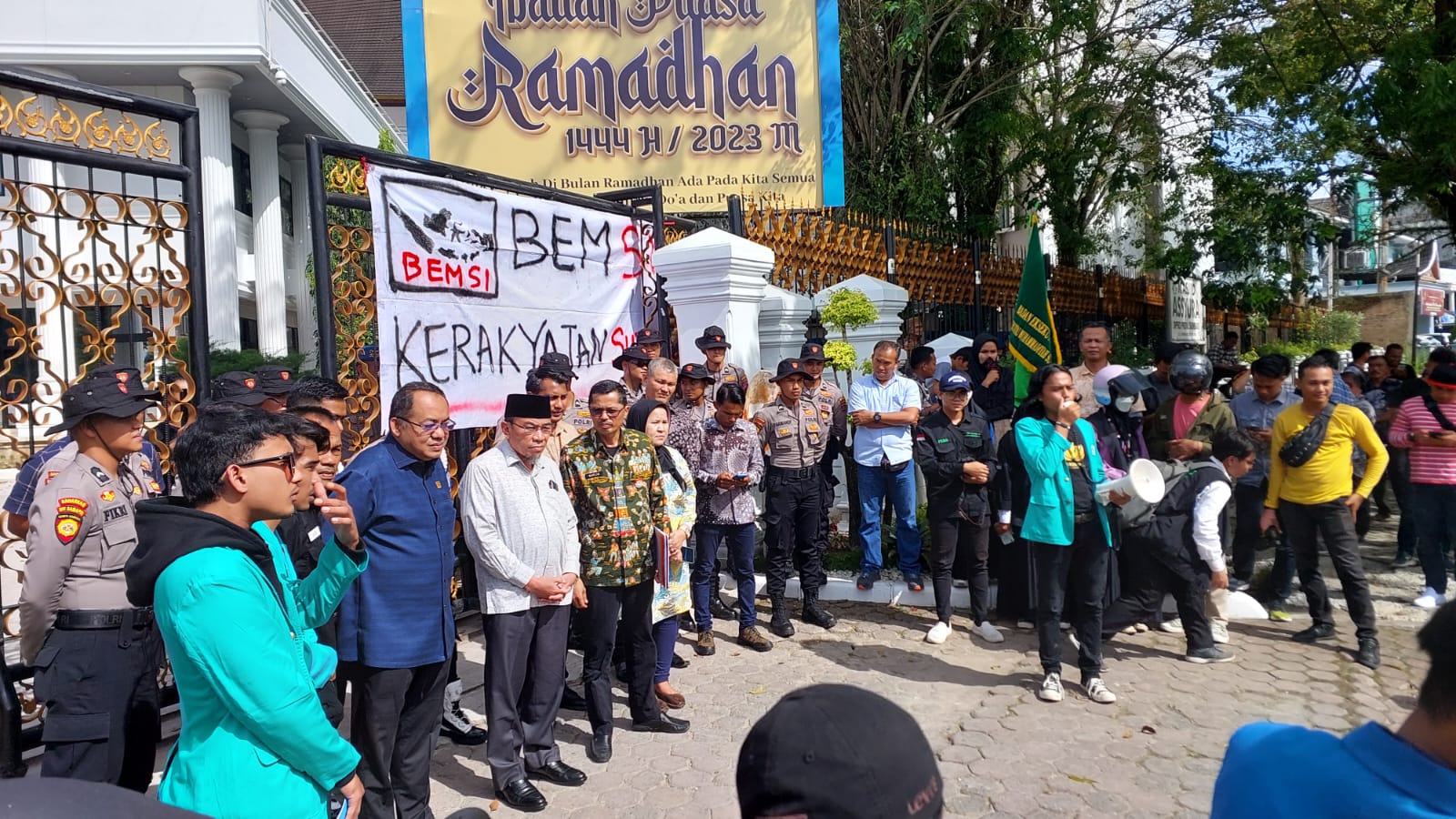 Tak lama kemudian, ketua Komisi 3 DPRD Sumbar, Ali Tanjung didampingi Wakil ketua komisi 1 Maigus Nasir serta Sekretaris DPRD Raflis menghampiri dan langsung duduk bersila bersama para mahasiswa.