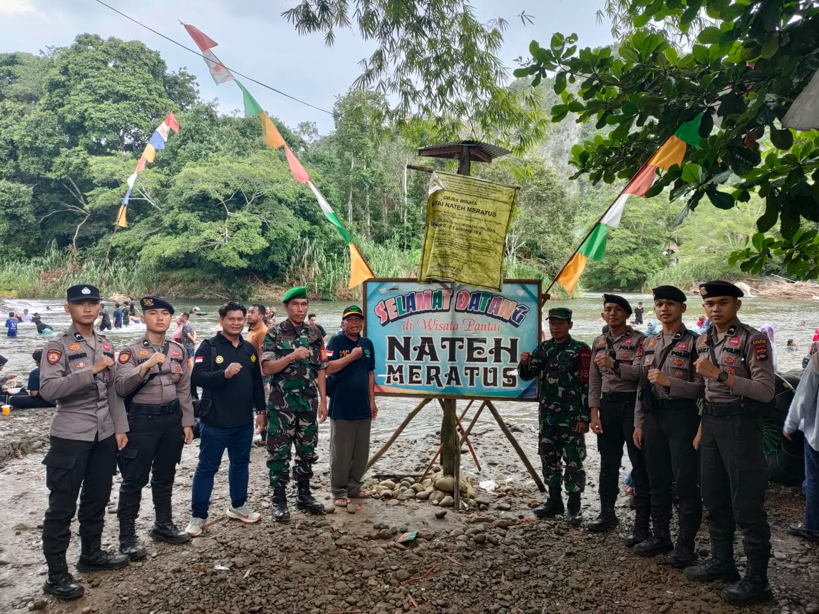 Patroli gabungan ini dalam rangka mengantisipasi kerawanan yang terjadi di obyek wisata sekaligus memberikan rasa aman dan nyaman kepada para pengunjung,”terang Babinsa Koramil 1002-01/Batang Alai Selatan Sertu Wahyu Arif Sasmita disela-sela kegiatan patroli