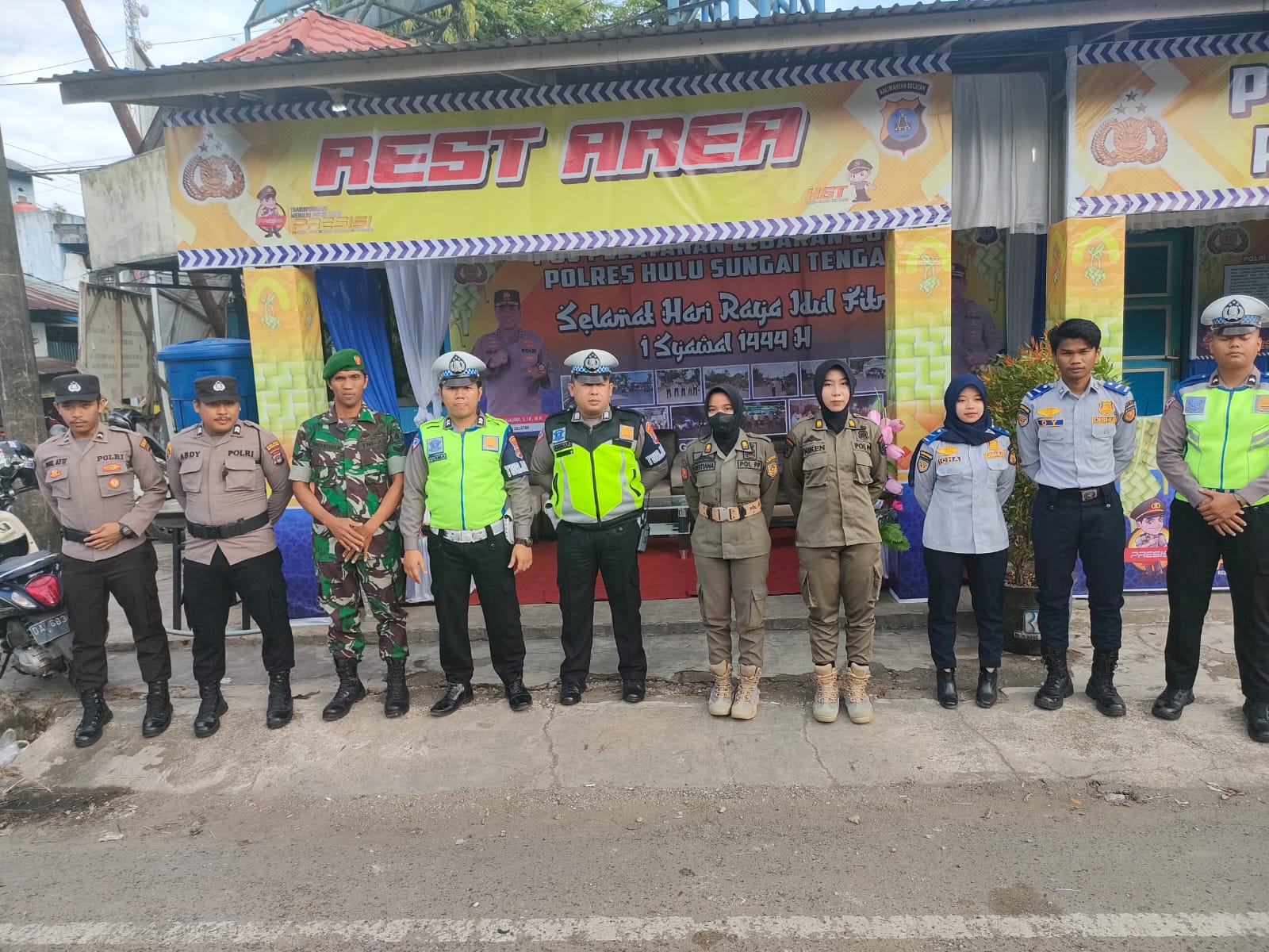 Aparat Gabungan TNI-Polri, Dinas Perhubungan Dan LH, BPBD, Kesehatan dan Satpol PP Kab.HST melaksanakan pengamanan jalur mudik di pos Burung Anggang dan Pos Simpang 3 Pantai Hambawang. Rabu (19/04).