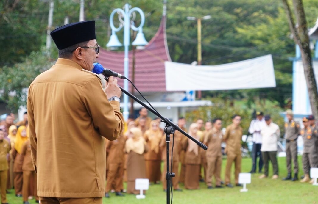 Batusangkar, Metrotalenta.online — Pemerintah Kabupaten Tanah Datar menggelar apel gabungan perdana pasca libur Idulfitri 1447 Hijriah, Senin (30/3/2026), di halaman Kantor Bupati setempat.