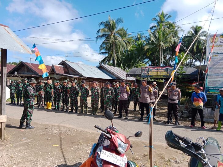 Apel pagi diikuti seluruh anggota Satgas TMMD ke-116 Tahun 2023 Kodim 1002/Hulu Sungai Tengah juga warga masyarakat desa Hapulang, Pantai Batung dan Mangunang.