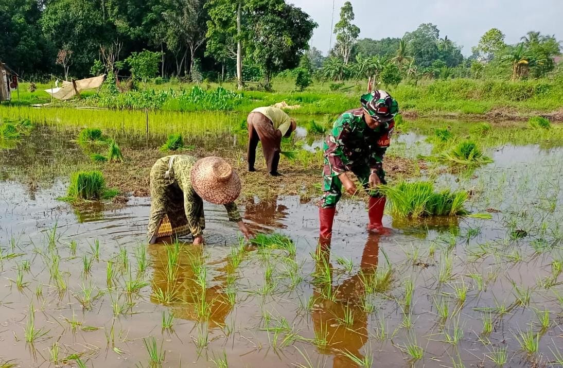 Babinsa Bantu Petani Tanam Padi di Hulu Sungai Tengah