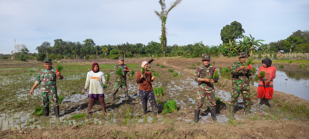 BerandaTNI-POLRIBabinsa Koramil 05/Pandawan Turun Langsung Ke Sawah Bantu Petani Tanam Padi