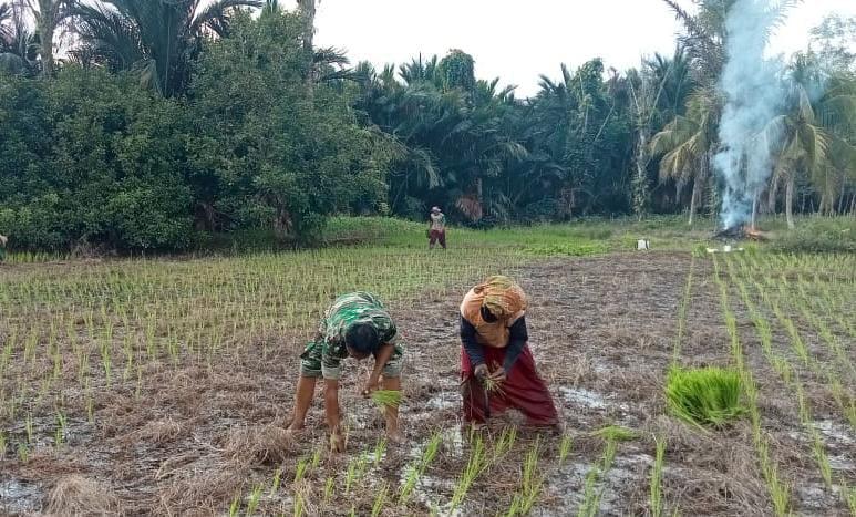 BerandaBarabaiBabinsa Koramil 1002-02/Batang Alai Utara Serda Gunawan Bantu Warga Tanam Padi