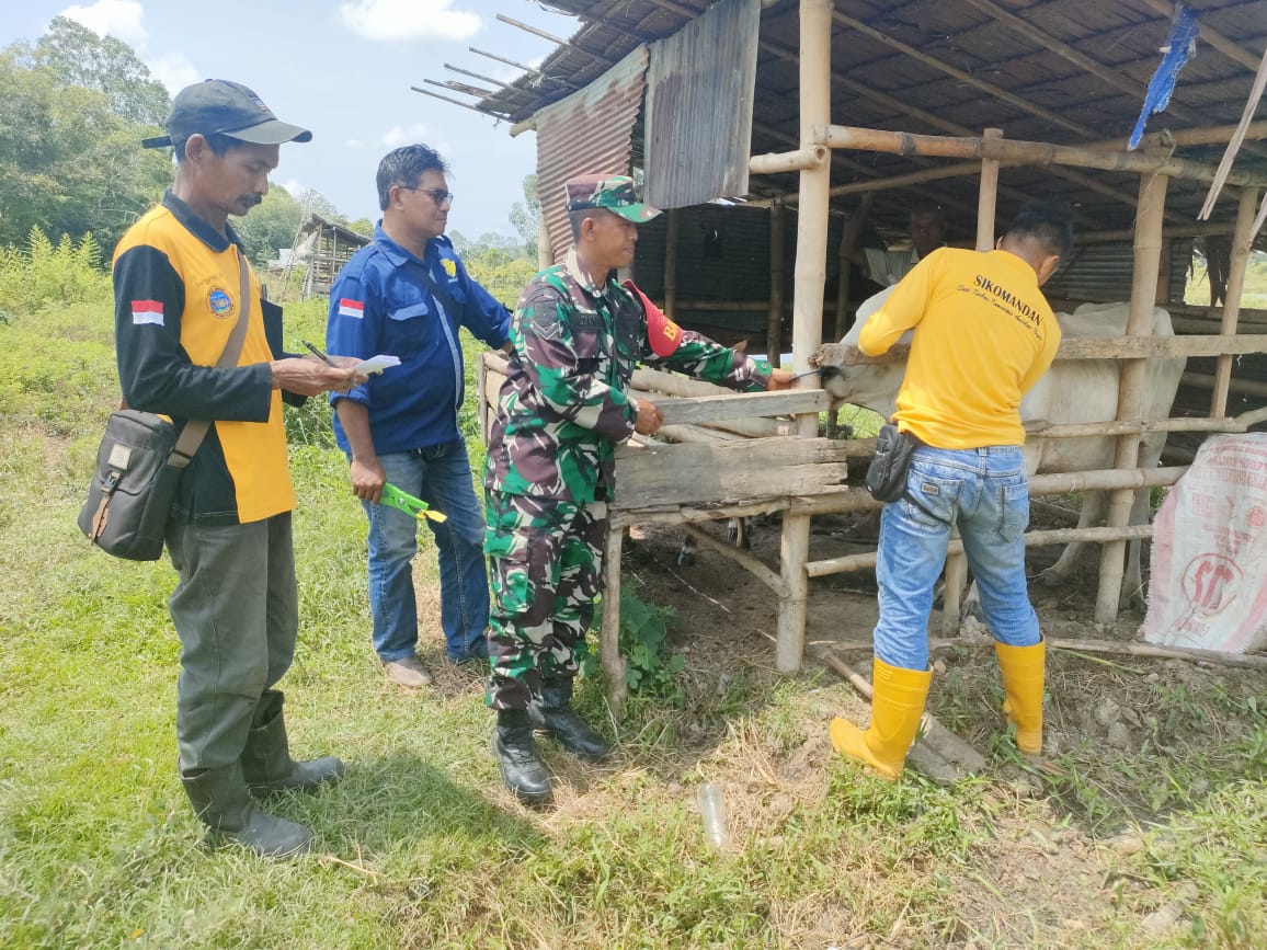 Sebanyak 50 ekor dan kambing 25 ekor hari mendapat vaksinasi PMK oleh petugas,”ujar Serda M.Zainuri