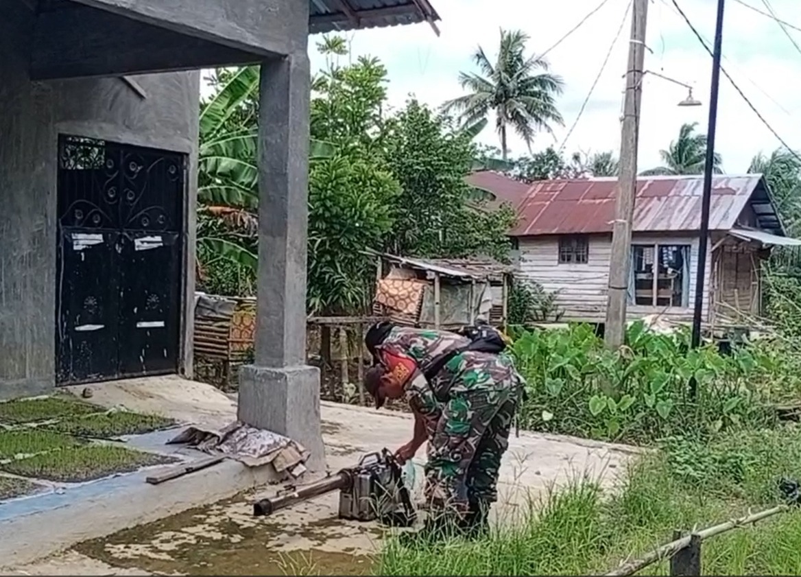 Babinsa Koramil 1002-07/Batu Benawa Bantu Fogging Di Desa Binaan