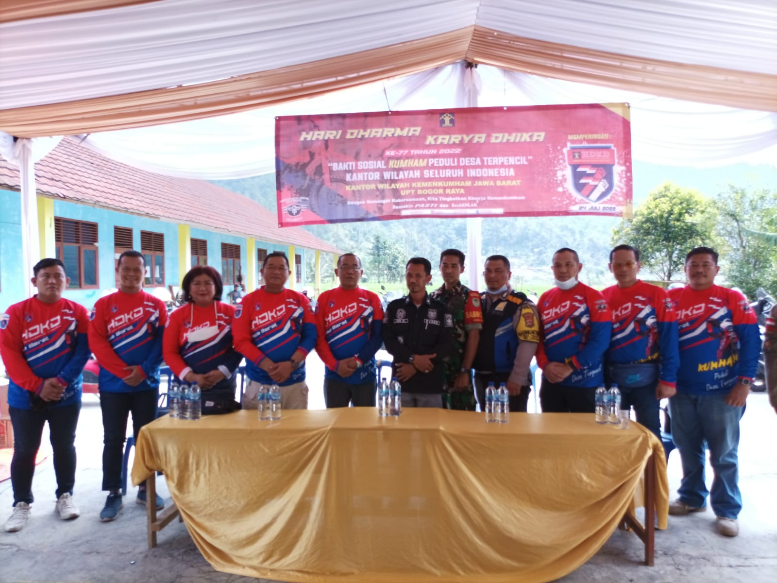 Bogor,Metrotalenta.online–Unit Pelaksana Teknis (UPT) Kemenkumham Wilayah Bogor Raya menggelar kegiatan Bakti Sosial (Baksos) Touring Kumham Peduli Desa Terpencil HDKD 2022 bagi warga yang terdampak banjir bandang dan longsor di Desa Purasari, Kecamatan Leuwiliang Kabupaten Bogor.