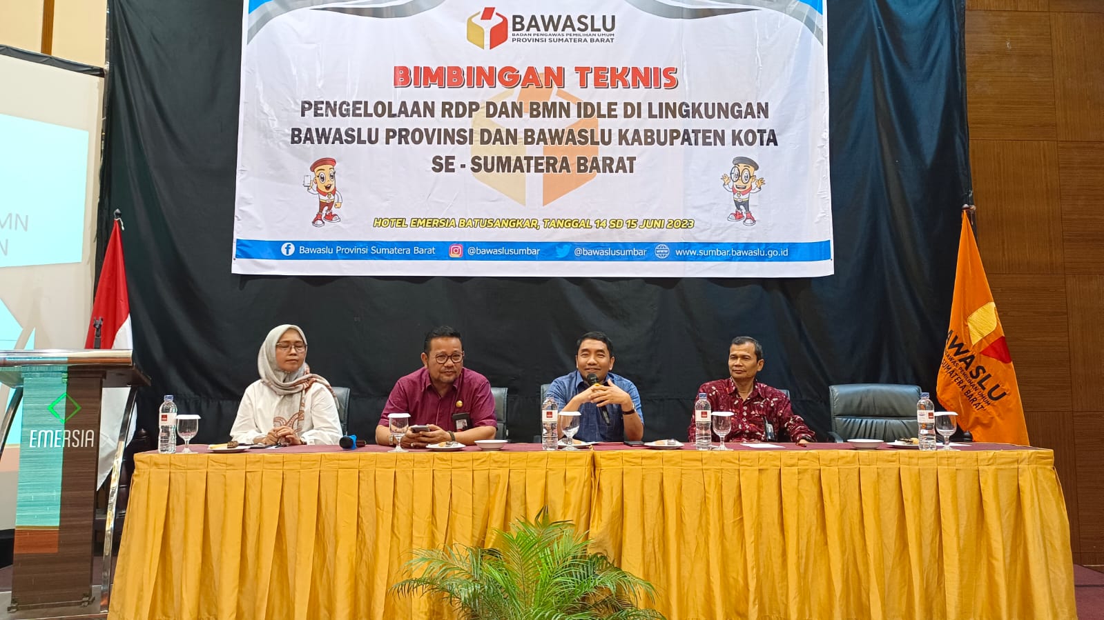 Tanah datar,metrotalenta.online–Bimtek Pengelolaan RDP Dan BMN Idle Di Lingkungan Bawaslu Provinsi,Kabupaten/Kota,Badan Pengawas Pemilu (Bawaslu) Provinsi Sumatera Barat melaksanakan Bimtek Pengelolaan RDP dan BMN Idle di Lingkungan Bawaslu Provinsi dan Kabupaten/Kota se-Sumatera Barat pada 14-15 Juni 2023 di Emersia Hotel dan Resort Batusangkar.