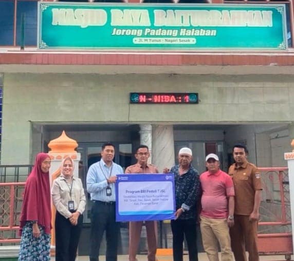 Pasaman Barat, Metrotalenta.-Bank Rakyat Indonesia (BRI) cabang Simpang Empat  Pasaman Barat, menyalurkan bantuan Revitalisasi tempat ibadah untuk Masjid Raya Baiturahman Kecamatan Sasak Ranah Pasise melalui program Tanggung Jawab Sosial dan Lingkungan (TJSL)
