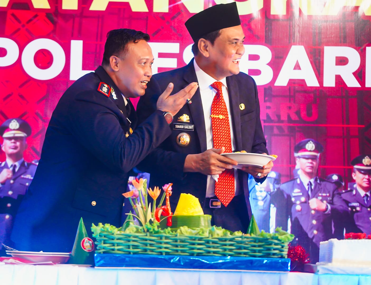 Bupati Barru.Ir.H.Suardi Saleh dalam sambutannya menyampaikan apresiasi dan terima kasih bahwa hari ini kita berkumpul dalam rangka HUT dan syukuran hari Bhayangkara ke-77 tahun 20223