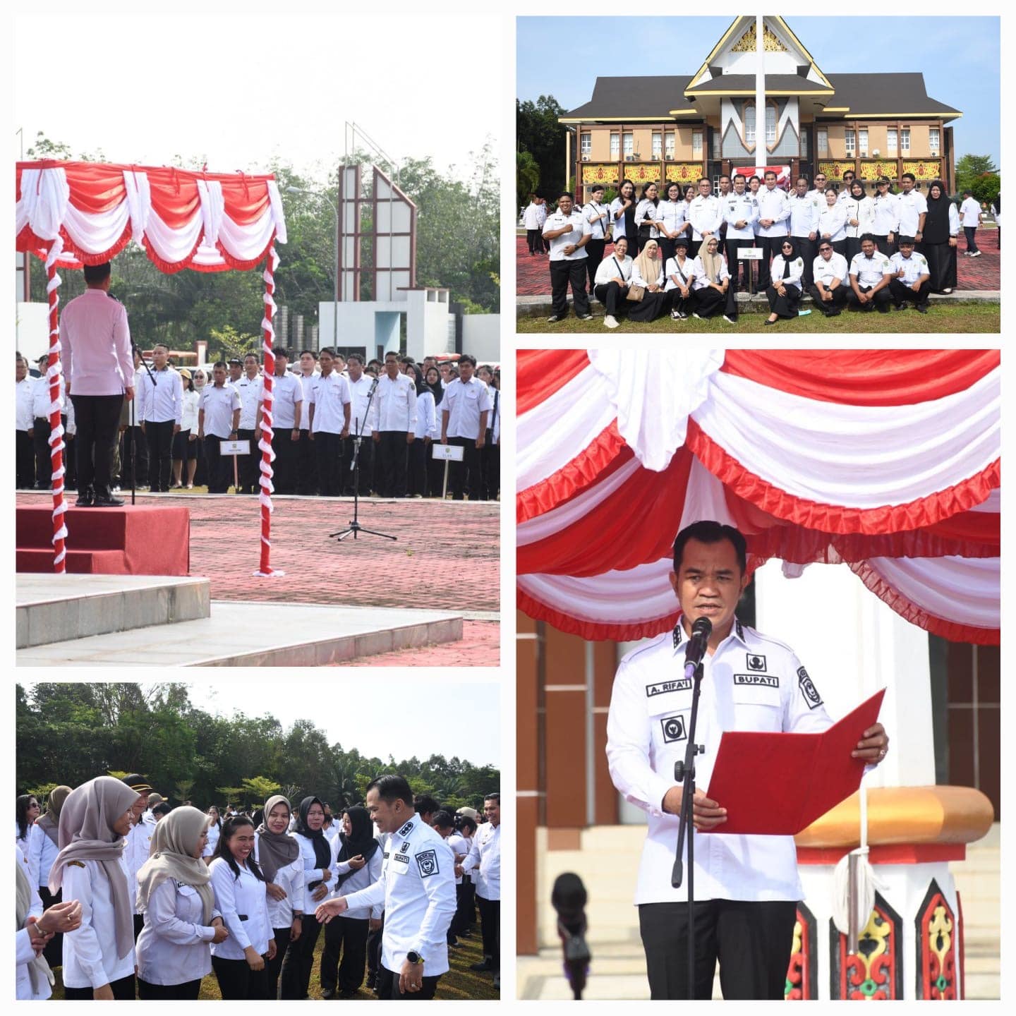 Apel gabungan tersebut diikuti oleh Sekretaris Daerah, para kepala perangkat daerah, serta seluruh Aparatur Sipil Negara (ASN) di lingkungan Pemerintah Kabupaten Pulang Pisau.