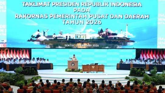 Rakornas Pemerintah Pusat dan Daerah Tahun 2026 secara resmi dibuka oleh Presiden Republik Indonesia, Prabowo Subianto serta dihadiri jajaran menteri kabinet, pimpinan lembaga negara, gubernur, bupati, serta wali kota se-Indonesia.