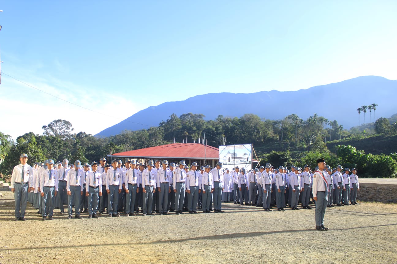 ⁿBupati Pasaman pimpin Upacara Bendera di halaman belakang SMA Negeri 3 Sumatera Barat ‘Boarding School’ di selatan Kota Lubuksikaping, Senin (8/8).