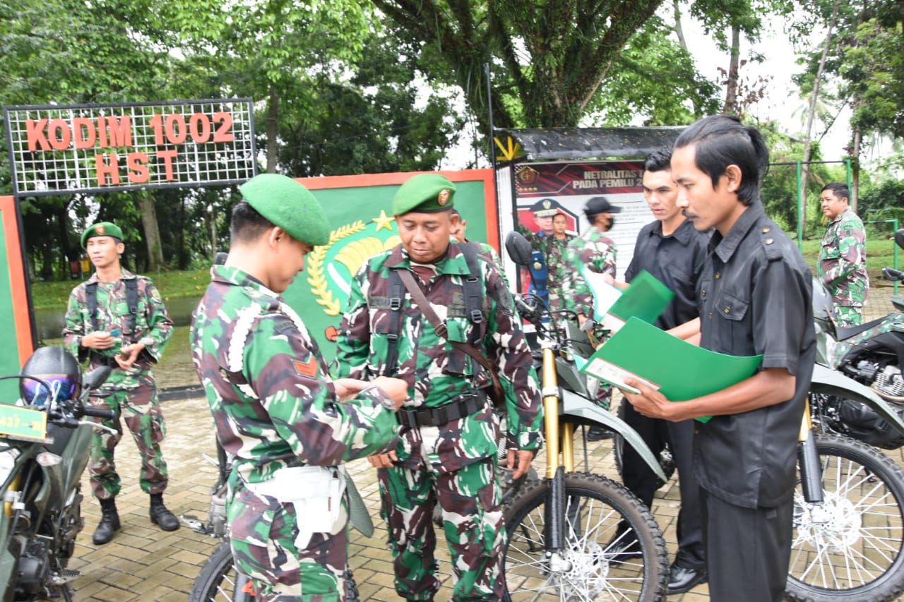 Dandim 1002/HST Letkol Inf Fery Perbawa.S.Hub.Int.,M.Han, melalui Pasi Intel Kodim 1002/HST Kapten Inf Lilis Susanto mengatakan, pengecekan kendaraan bermotor yang dilaksanakan ini sebagai tindak lanjut dari perintah komando atas, agar segenap prajurit dan PNS jajaran TNI AD mematuhi peraturan dan tata tertib berlalu lintas khususnya kelengkapan kendaraan bermotor dalam hal ini knalpot yang tidak sesuai dengan standarnya / brong,”ujarnya