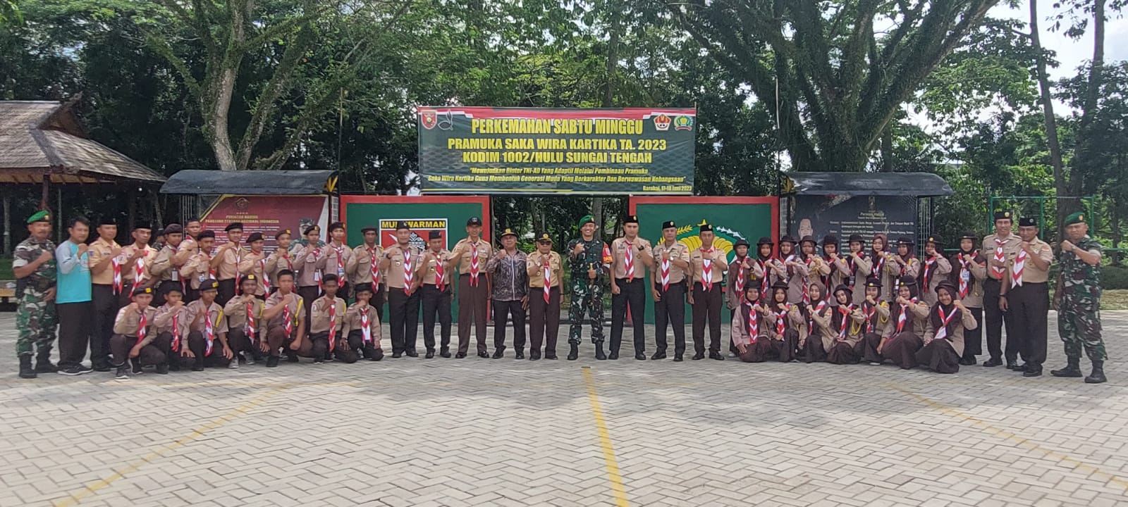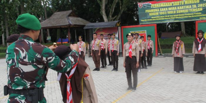 Barabai,metrotalenta.online–Dandim 1002/HST Buka Persami Saka Wira Kartika Ta 2023,Komandan 1002/HST Letkol Kav Gagang Prawardhana.S.I.P.,M.Han membuka secara resmi Persami (Perkemahan Satu Minggu) Saka Wira Kartika Tahun Anggaran 2023 bertempat di lapangan apel Makodim Jalan Telaga Padawangan Kelurahan Barabai Timur Kecamatan Barabai Kabupaten Hulu Sungai Tengah. Sabtu (17/6/2023).