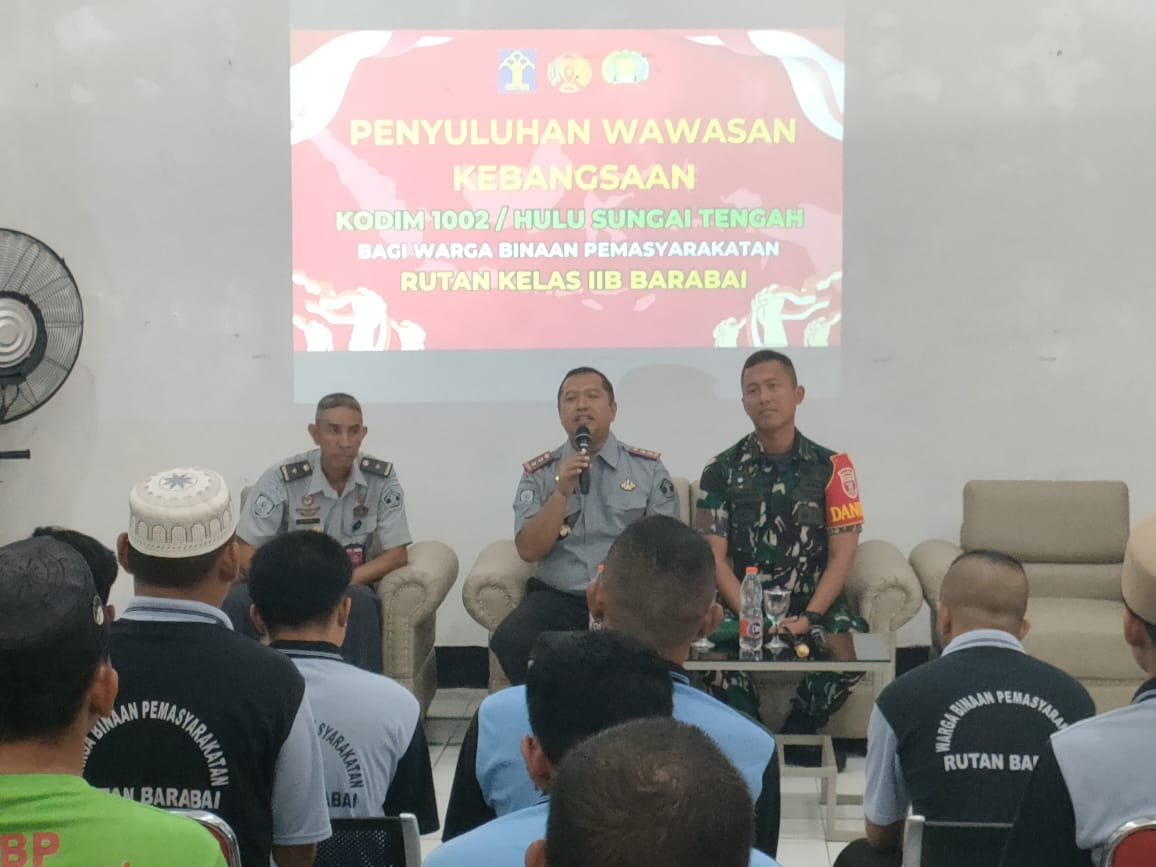 Barabai,metrotalenta.online–Komandan Kodim 1002/HST Letkol Inf Fery Perbawa.S.Hub.Int.,M.Han memberikan sosialisasi wawasan kebangsaan kepada warga binaan rutan kelas IIB. Kamis (26/10).