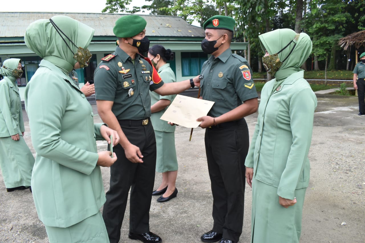 Acara Korp raport Pindah dan masuk satuan dihadiri oleh Perwira Staf, Danramil jajaran Kodim 1002/HST, Ketua Persit Kartika Chandra Kirana Cabang XXV Dim 1002 Koorcab Rem 101 PD VI/Mulawarman dan perwakilan pengurus. (pendim1002).