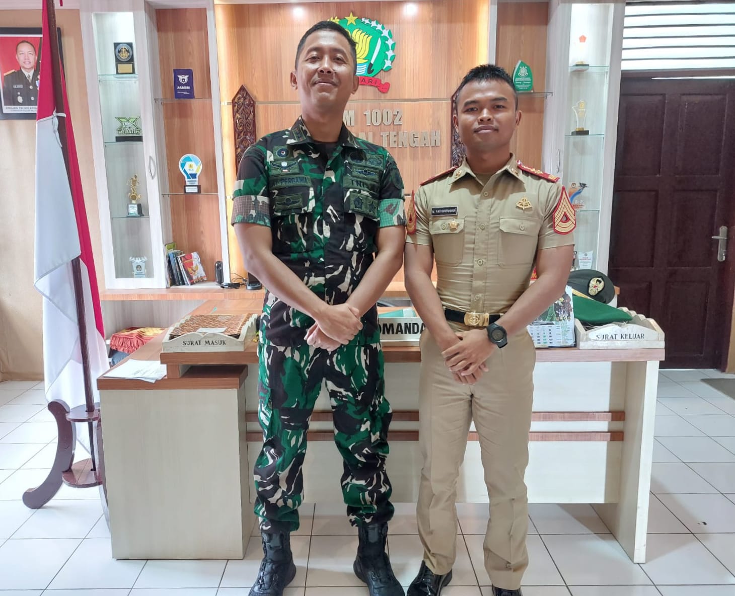 Barabai,metrotalenta.online–Dandim 1002/Hulu Sungai Tengah Letkol Inf Fery Perbawa.S.Hub.Int.,M.Han menerima kunjungan Siswa Taruna Akmil Sersan Taruna M. Faturrachman asal dari Desa Bulayak Kecamatan Hanatakan Ka.Hulu Sungai Tengah bertempat di Makodim 1002/HST Jalan Telaga Padawangan Kel. Barabai Timur Kec. Barabak Kab.HST. Kamis (28/12/2023).