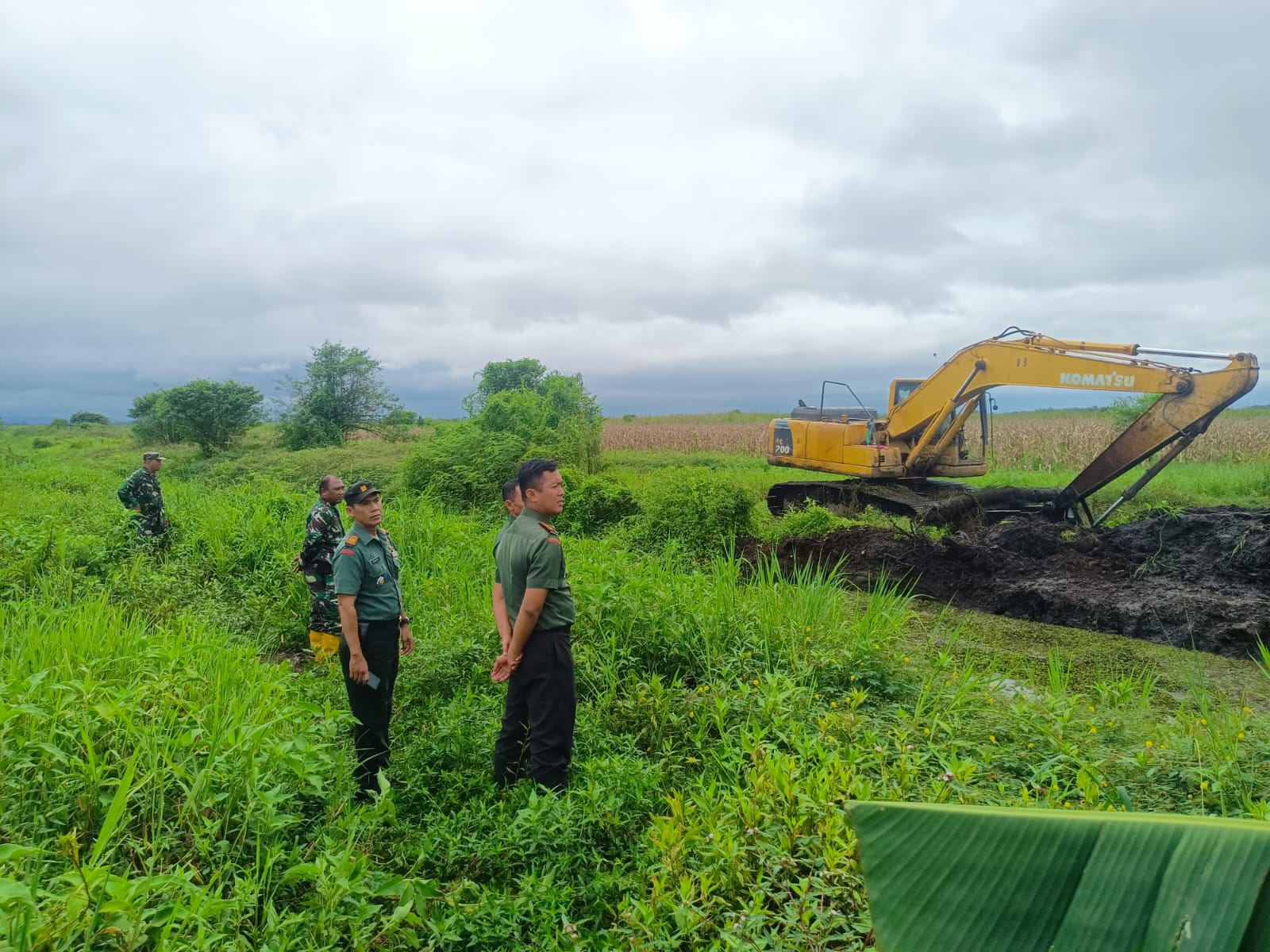 Komandan Kodim (Dandim) 1002/HST, Letkol Inf Fery Perbawa, S.Hub.Int., M.Han., meninjau langsung proyek normalisasi sungai di Desa Kambat Utara, Kecamatan Pandawan, bersama para stafnya. Selasa (12/11).