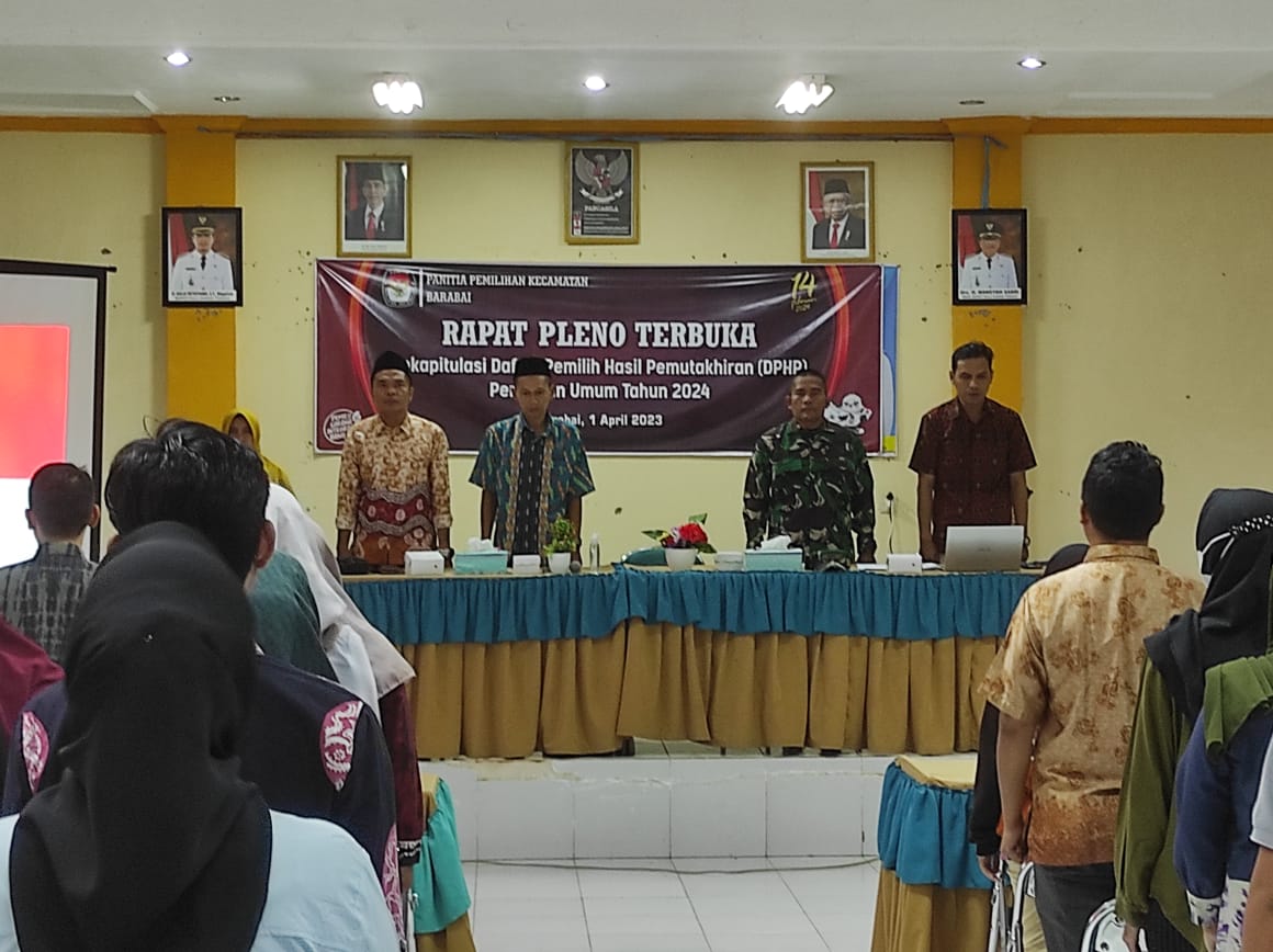 Rapat pleno dipimpin oleh ketua PPK Barabai Muhammad Ramli yang diikuti oleh Panitia Pemungutan Suara (PPS) kecamatan Barabai, Anggota PPK kecamatan Barabai, Panwaslu Kecamatan Barabai, Para Petugas Pemutahiran Data Pemilih ( Pantarlih ) dan Para Pengurus Partai Politik Peserta Pemilu 2024 berdasarkan Peraturan Komisi Pemilihan Umum Nomor 7 Tahun 2023 tentang Perubahan Atas Peraturan Komisi Pemilihan Umum Nomor 2 Tahun 2022 tentang Penyusunan Daftar Pemilih Dalam Penyenggaraan Pemilihan Umum dan Sistem Informasi Data Pemilih serta Surat Keputusan Komisi Pemilihan Umum Nomor 27 Tahun 2023 tentang Pedoman Teknis Penyusunan Daftar Pemilih Dalam Negeri pada Penyelenggaraan Pemilihan Umum.