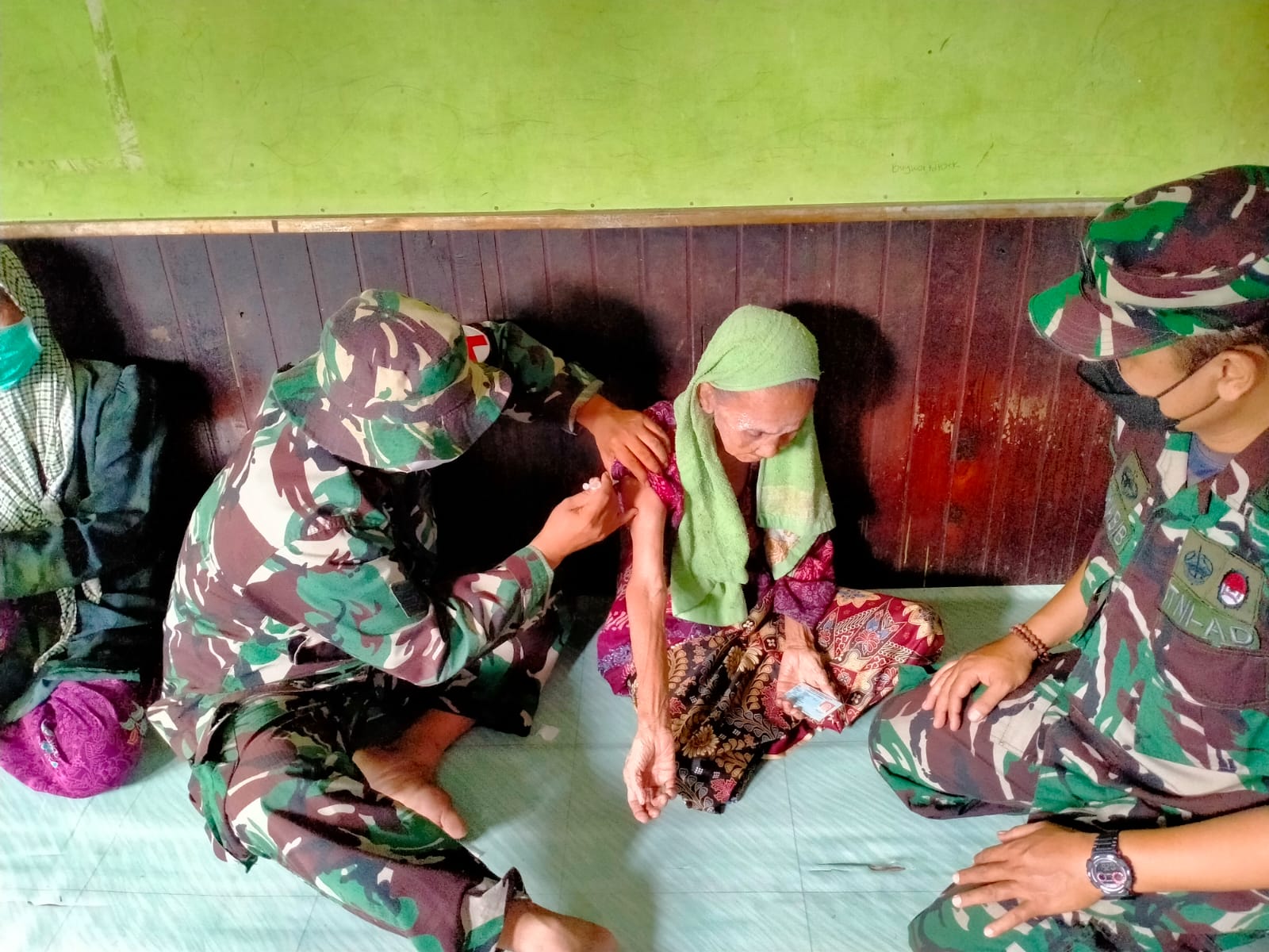Barito Kuala,Metrotalenta.online–Danramil 1005-01/Bakumpai bersama Tim Poskes Kodim 1005/Barito Kuala,Melaksanakan Giat Vaksinasi Covid-19 Kepada Para Lansia Dengan Cara Menyisir dan Door to door Dalam Rangka Percepatan Vaksinasi Covid-19 Untuk Para Lansia, Kec.Bakumpai dan Kec.Marabahan Minggu (13/02/2022)
