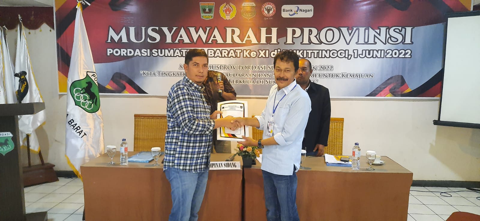 Tepat pukul 15.15 Wib Ramlan Nurmatias menyerahkan kepemimpinan Pordasi Sumbar 2022 pada Deri Asta dan secara aklamasi 24 anggota Musprov dari 8 Kab / Kota secara aklamasi dan ini bentuk wujud kenegarawanan jarang di cabor lain.