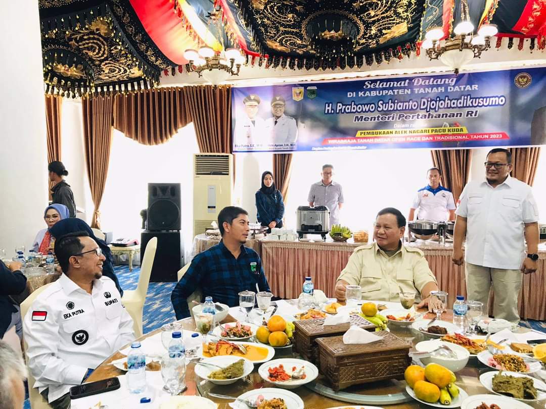 Kesempatan berdiskusi dengan Menhan Prabowo Subianto itu diperoleh Wali Kota Deri Asta dalam jamuan makan siang di Balairung Rumah Dinas Bupati Tanah Datar beberapa saat sebelum Alek Nagari Pacu Kuda Wirabraja Tanah Datar Open Race dan Tradisional Tahun 2023.
