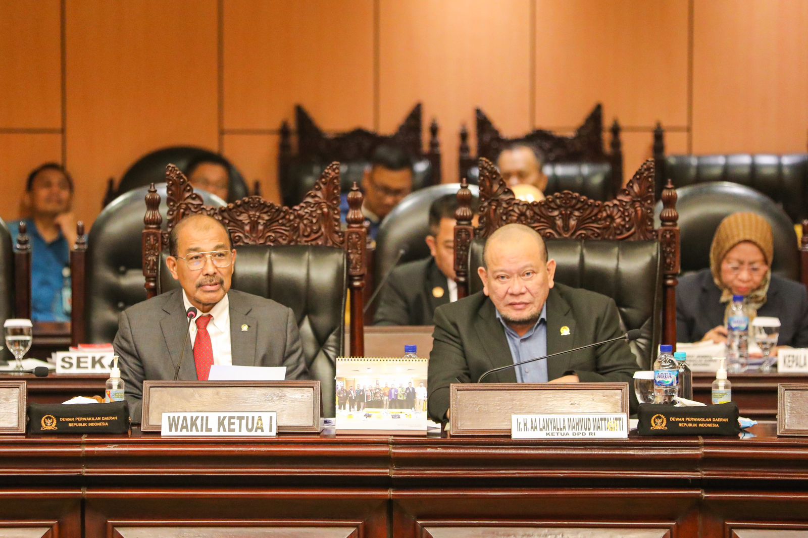 “Mengingat sebentar lagi kita akan masuk bulan puasa, pemerintah harus bisa melakukan operasi pasar agar bisa mengendalikan stabilitas harga bahan pokok dan pasokan barang,” ucap Wakil Ketua DPD RI Nono Sampono didampingi Ketua DPD RI AA Lanyalla Mahmud Mattalitti saat memimpin Sidang Paripurna DPD RI Ke-9 Tahun 2022-2023 di Nusantara V Komplek Parlemen, Jakarta, Kamis (16/3).
