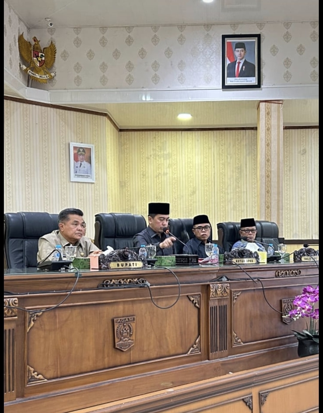Rapat tersebut dipimpin langsung Ketua DPRD Kabupaten Agam H. Ilham, Lc, MA didampingi Wakil Ketua Henrizal, Muhammad Risman dan Aderia, SP.