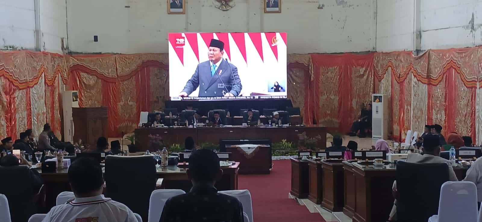 Acara kemudian berlanjut dengan mendengarkan pidato Presiden RI Prabowo Subianto.