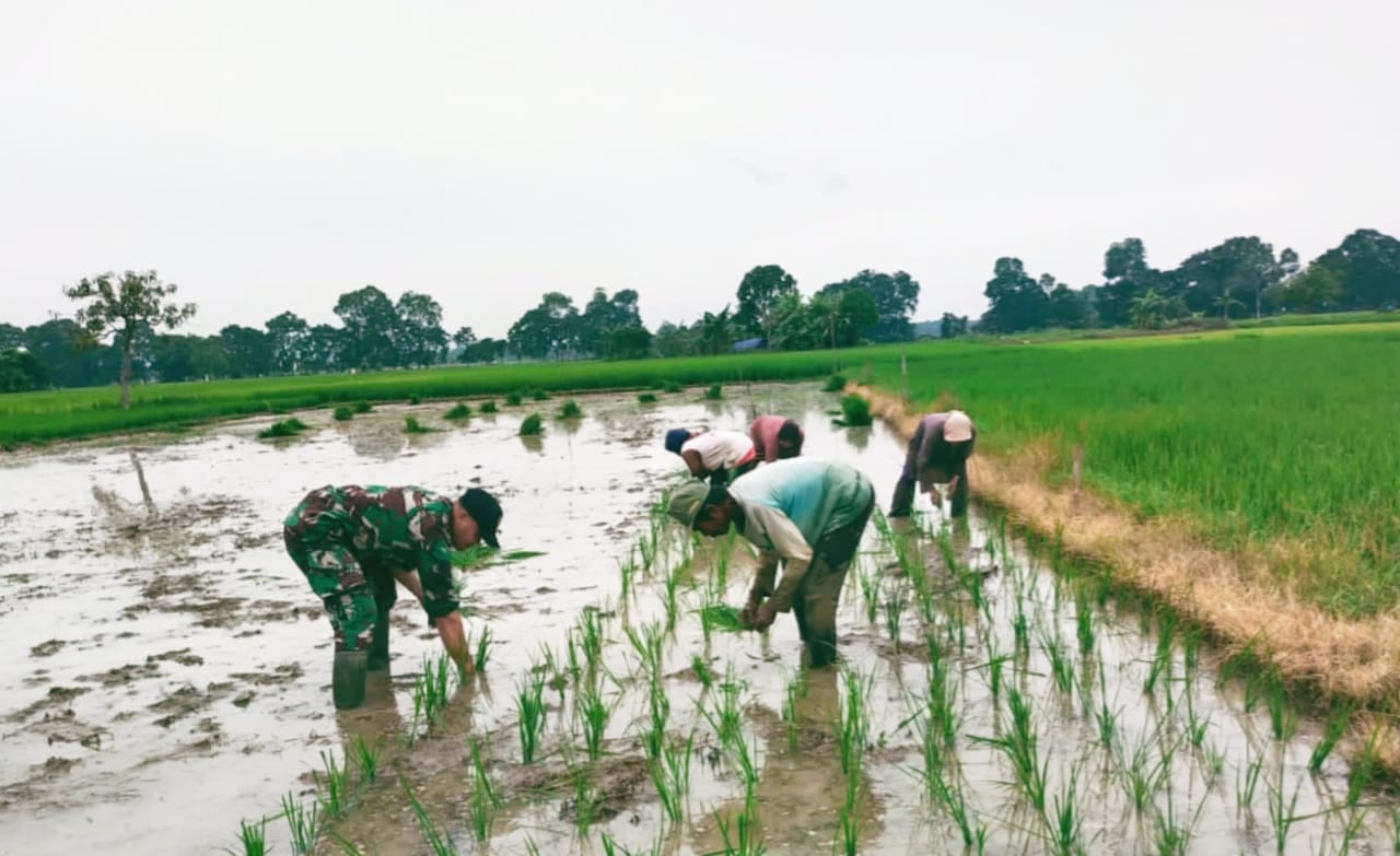 Seperti hari ini, Serda Yunus Suyanto membantu kelompok tani Suka Maju menanam padi, ini merupakan salah upaya untuk mendukung ketahanan pangan di tengah inflasi saat ini,”tambahnya.