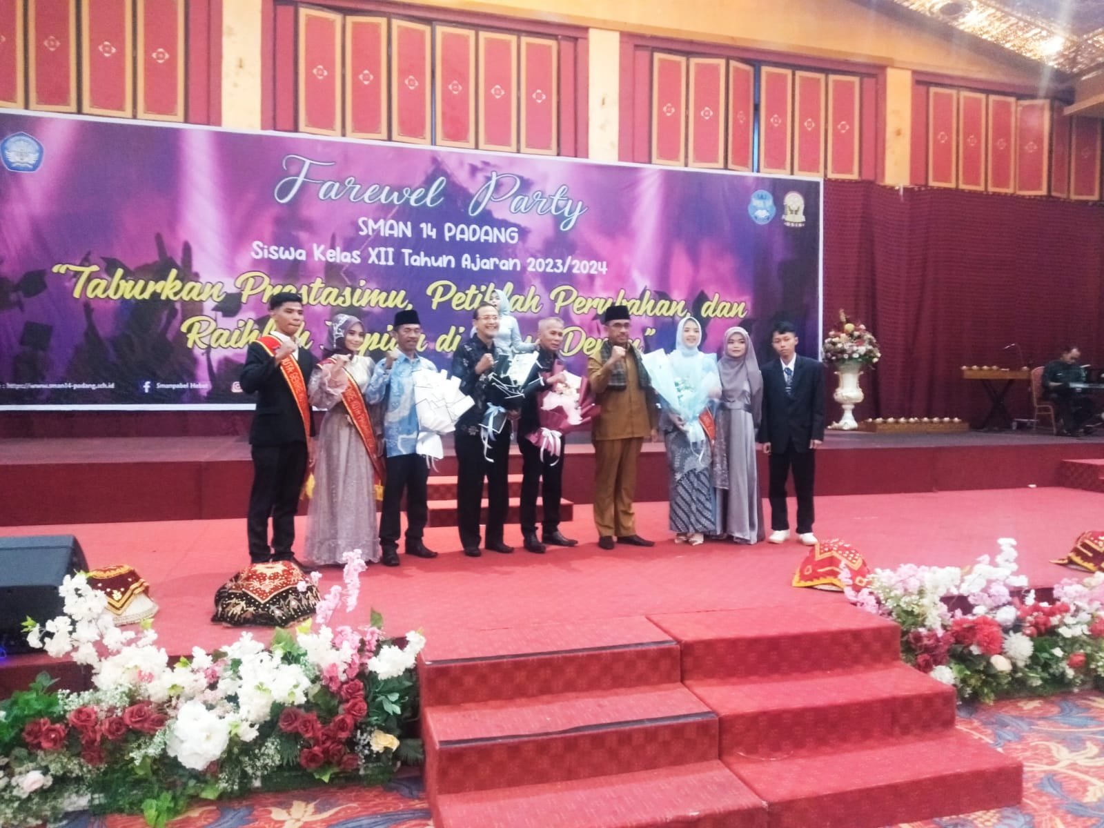 Metrotalenta.online– Acara perpisahan kelas XII sman 14 Padang yang di laksanakan di UPI Convention center tanggal 4 Juni 2024 berjalan dengan lancar dan sangat meriah , berbagai seni dan kreativitas siswa ditampilkan disini .Acara ini dihadiri oleh kepala dinas pendidikan sumatera barat , kepala sman 14 padang dan seluruh unsur pimpinan , ketua komite sman 14 Padang , majelis guru dan tata usaha , ketua KAN Luki , camat Luki, lurah batu gadang ,Kapolsek Luki , Koramil Luki , Babinsa batu gadang ,babinkamtibmas batu gadang ,kepala puskesmas Luki, pengawas pendudukan provinsi Sumbar , pengawas pendamping sman 14 Padang ,kepala sma se kota Padang ,alumni sman 14 Padang dan tamu undangan lainnya .