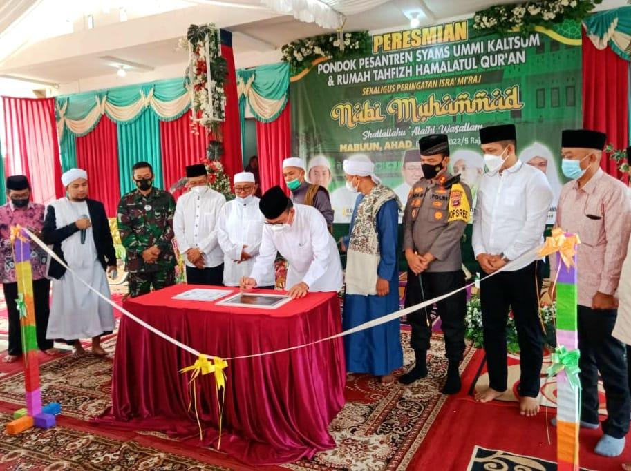 Tabalong,Metrotalenta.online–Forkopimda Tabalong Hadiri Peresmian Ponpes,Rumah Tahfiz,Peringatan Isra Mi’raj,Komandan Kodim 1008/Tabalong Letkol Inf Ras Lambang Yudha menghadiri peresmian Pondok Pesantren Syams Ummi Kaltsum sekaligus Rumah Tahfiz Hamatul Qur’an yang beralamat di Jl. Mabuun Indah RT. 4, Kelurahan Mabuun, Kabupaten Tabalong, Minggu 6/02/22.