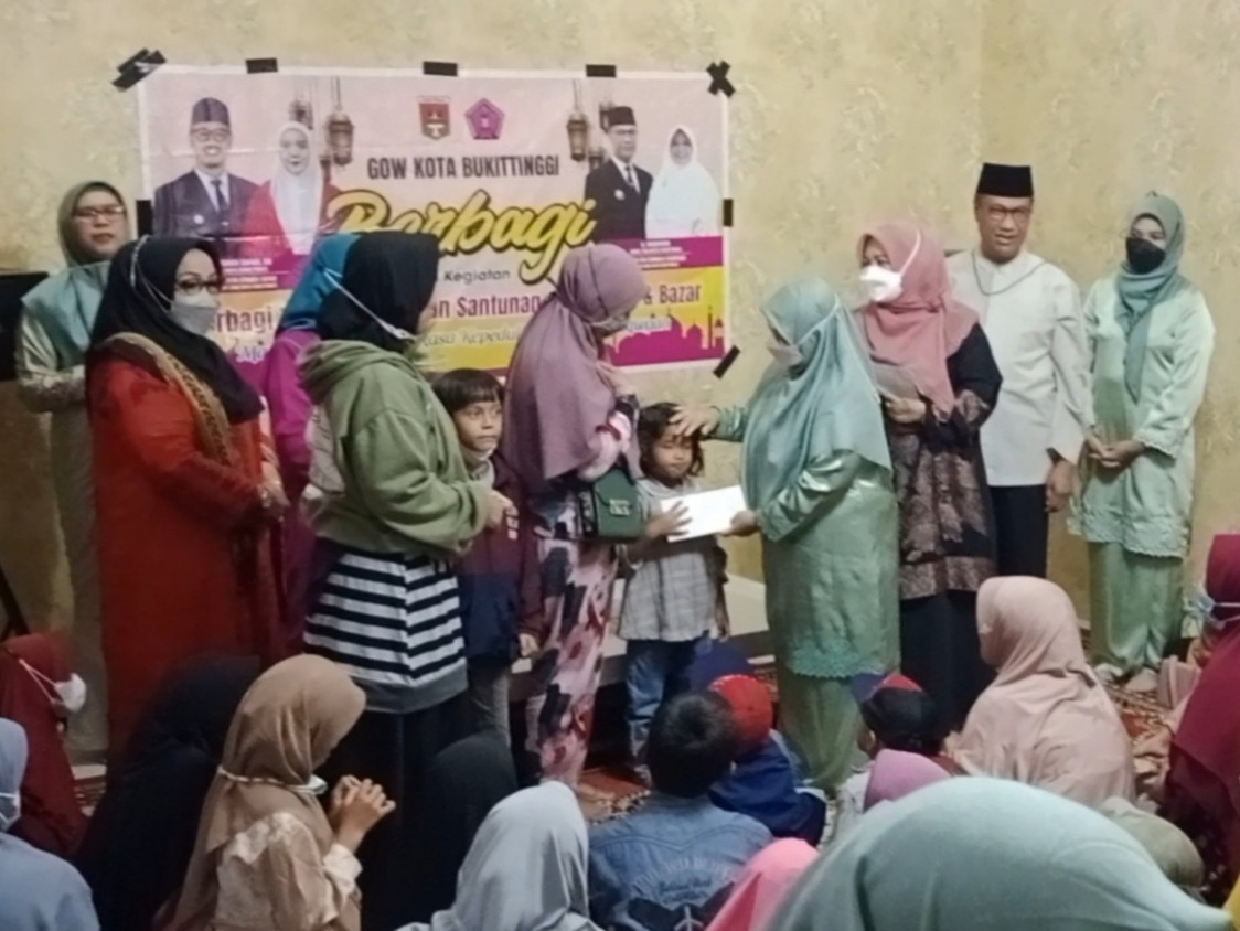“Sedikitnya kita berbagi kepada sekitar 80 anak yatim-piatu se Kota Bukittinggi yang diprakarsai oleh GOW Kota Bukittinggi. Kita berbagi dalam bentuk takjil dan santunan kepada anak yatim-piatu,” ujar Ketua GOW Kota Bukittinggi, Ny. Nurna Eva Karmila, di Rumah Dinas Wakil Walikota Bukittinggi, pada Senin, 18 April 2022.