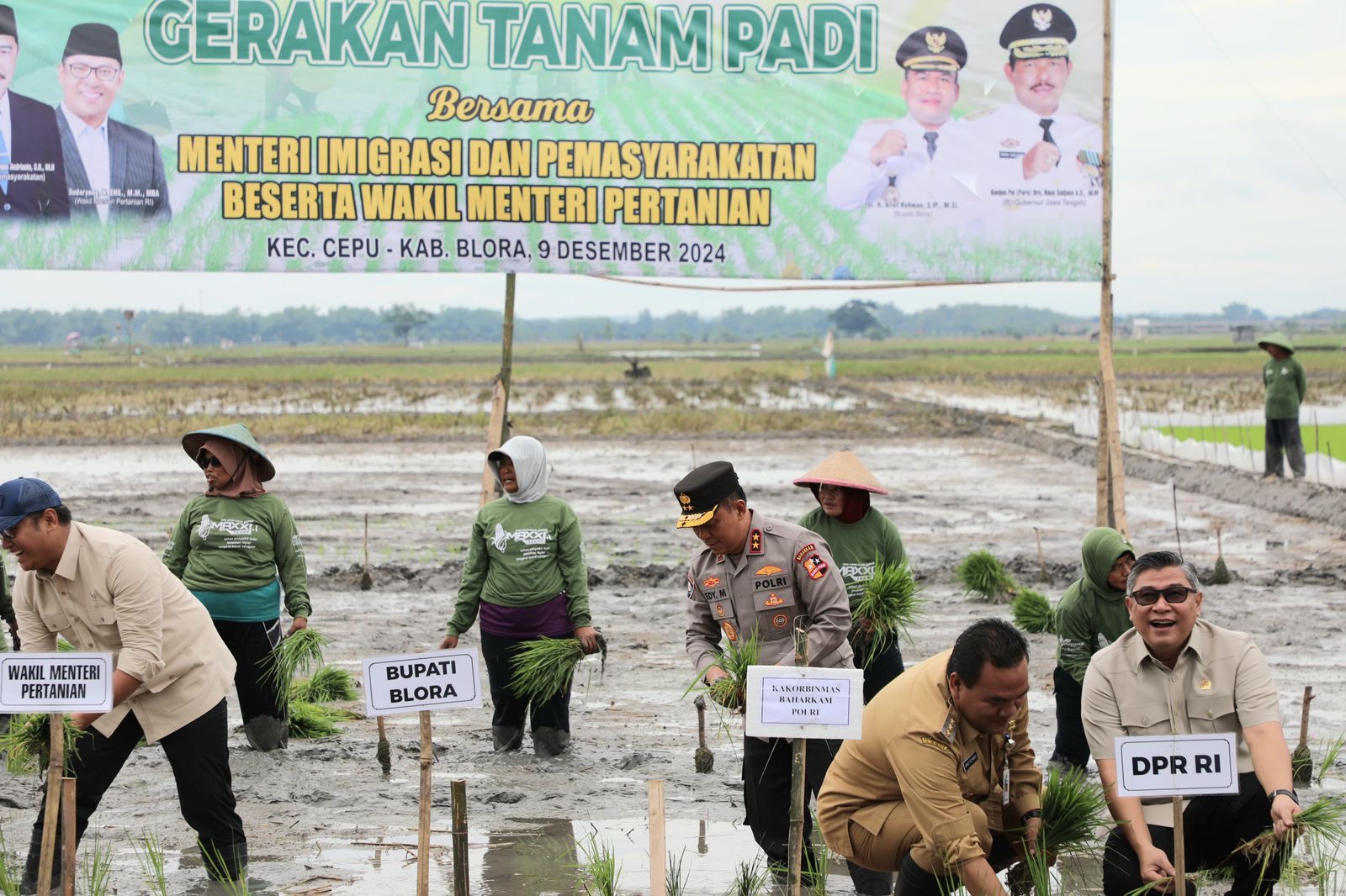 Acara penanaman serentak itu turut dihadiri oleh Menteri Imigrasi dan Pemasyarakatan Agus Andrianto, Wakil Menteri Pertanian Sudaryono dan forkopimda Kabupaten Blora.