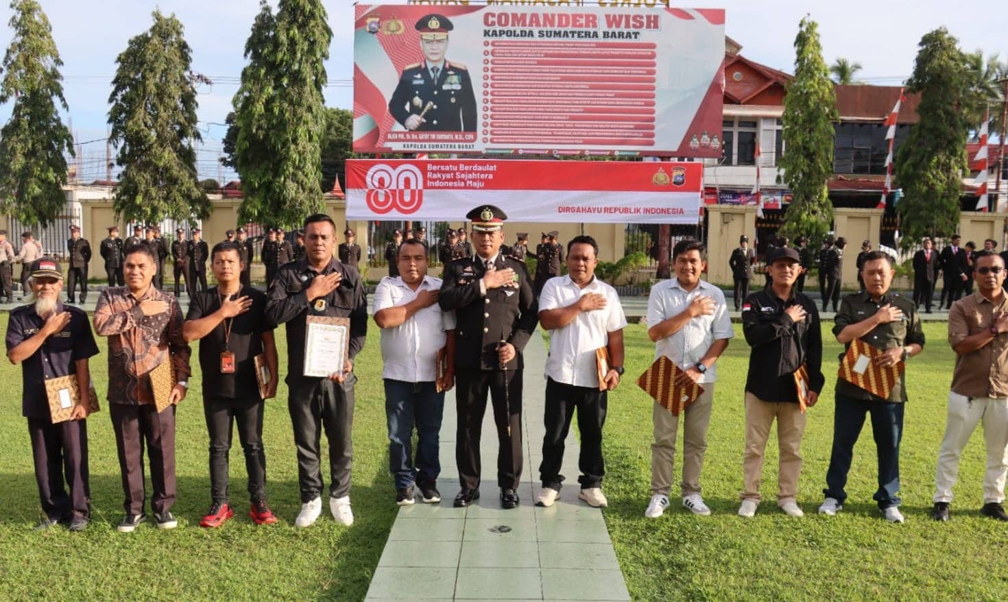 Pasaman Barat, MetroTalenta.online–Kapolres Pasaman Barat AKBP. Agung Tribawanto, S.IK memberikan piagam penghargaan dan apresiasi kepada wartawan bertepatan di Hari Kemerdekaan Republik Indonesia ke – 80 tahun di halaman Polres setempat, Minggu (17/08/2025).