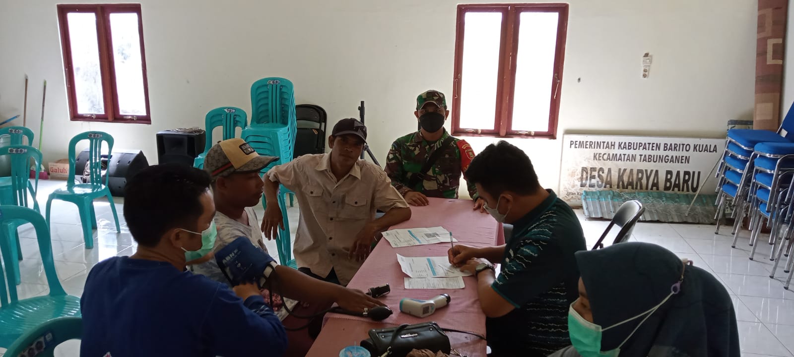 Untuk diketahui, pelaksanaan vaksinasi massal kali ini di Kantor Desa karya baru kec.Tabunganen, Menurut Serda Yaterlin anggota Koramil 11/ Tabunganen bahwa vaksinasi kali ini menyasar kepada masyarakat yang belum melaksanakan vaksin dosis pertama dan dosis kedua.