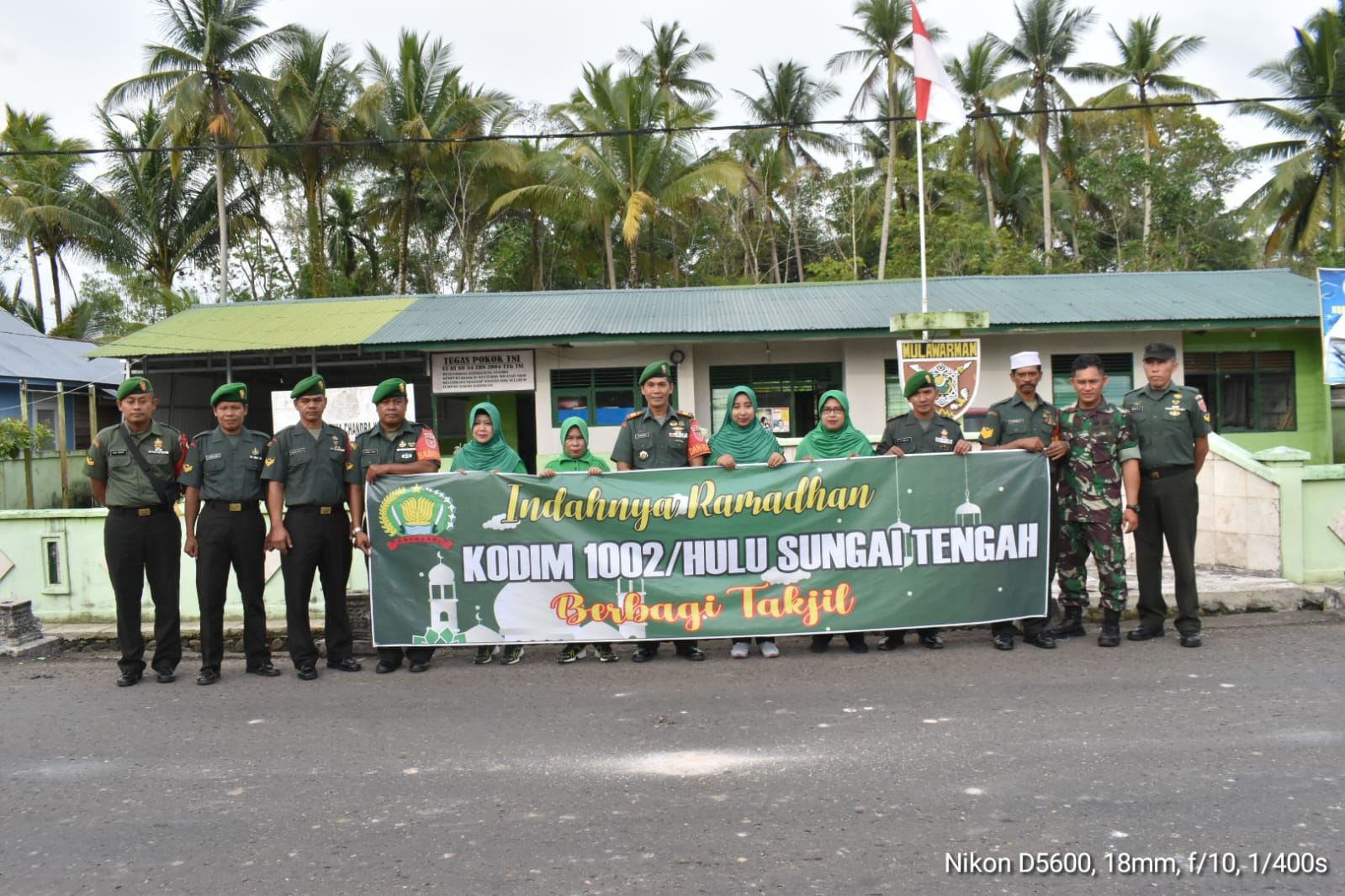 “Hari ini kita bagikan 100 bungkus takjil dibagikan oleh anggota Kodim 1002/HST bersama Persit Kartika Chandra Kirana Cabang XXV Dim 1002 Koorcab Rem 101 PD VI/Mulawarman,”terangnya.