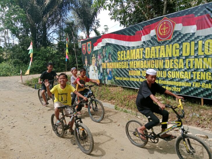 Dituturkan oleh Kopka Yusran, saat kami sedang meliput kegiatan TMMD, sekelompok anak-anak desa Hapulang mendatangi lokasi sasaran jalan sambil bersepeda.