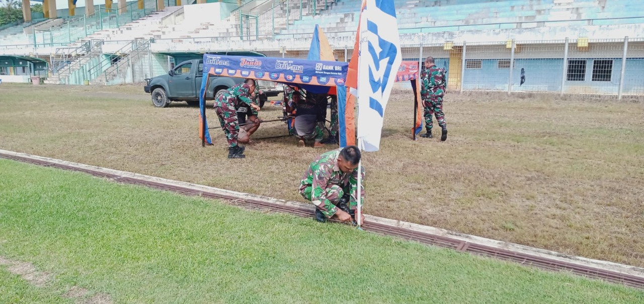 Barabai,Metrotalenta.online–Kodim 1002/HST bersama Askap PSSI Hulu Sungai Tengah melaksanakan pembersihan Stadion Murakata Mandingin Barabai jelang Kick Off Liga Santri PSSI Piala Kasad Tahun 2022. Minggu (18/06).