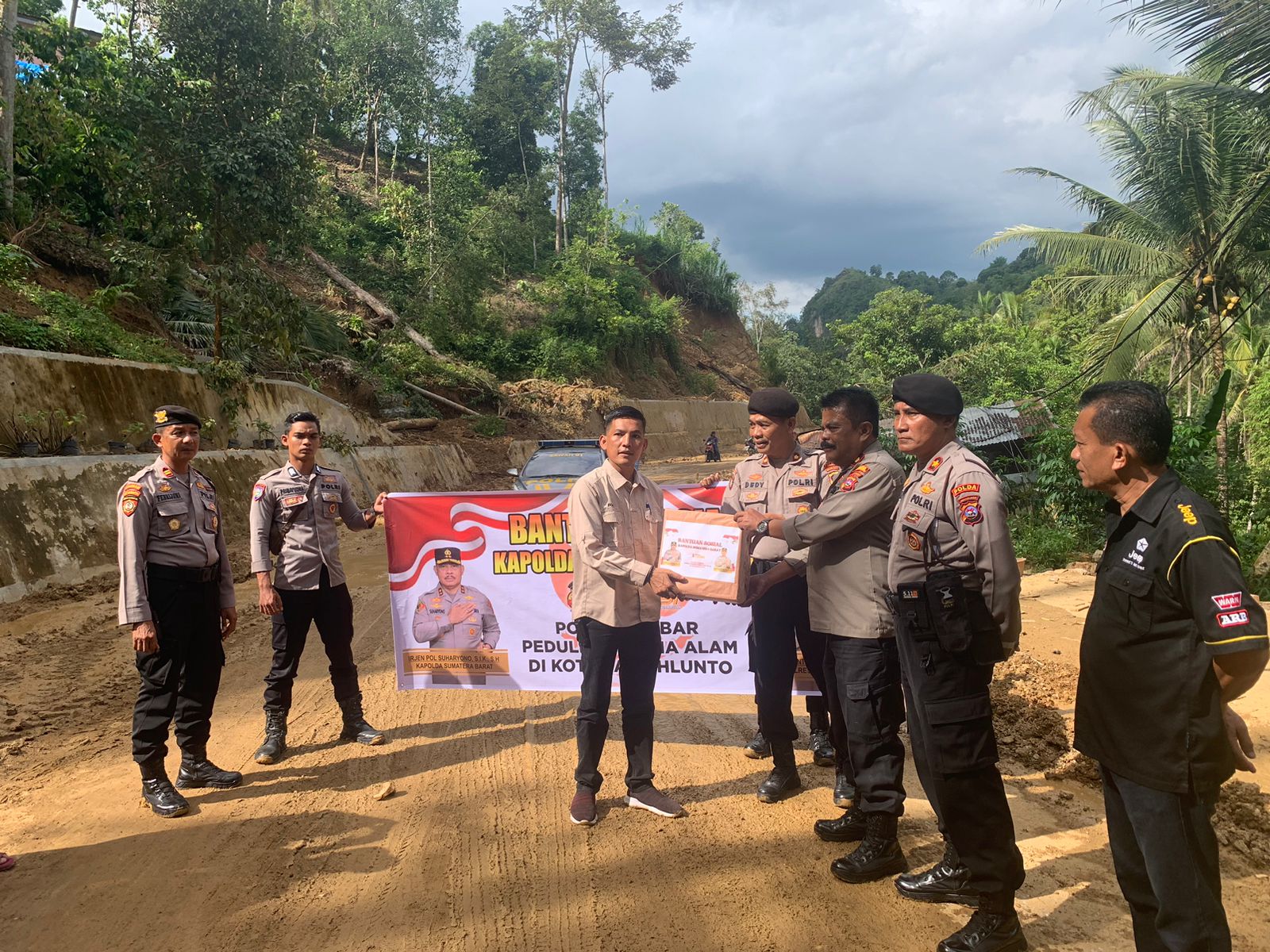 Kapolres Sawahlunto AKBP Purwanto Hari Subekti, S.Sos melalui Kasi Humas Polres Sawahlunto Iptu Sudirman mengatakan, sebanyak 125 paket sembako bantuan kemanusiaan untuk korban tanah longsor dari Kapolda Sumbar itu, diserahkan kepada masyarakat Desa Kubang Tangah dan Desa Pasar Kubang.