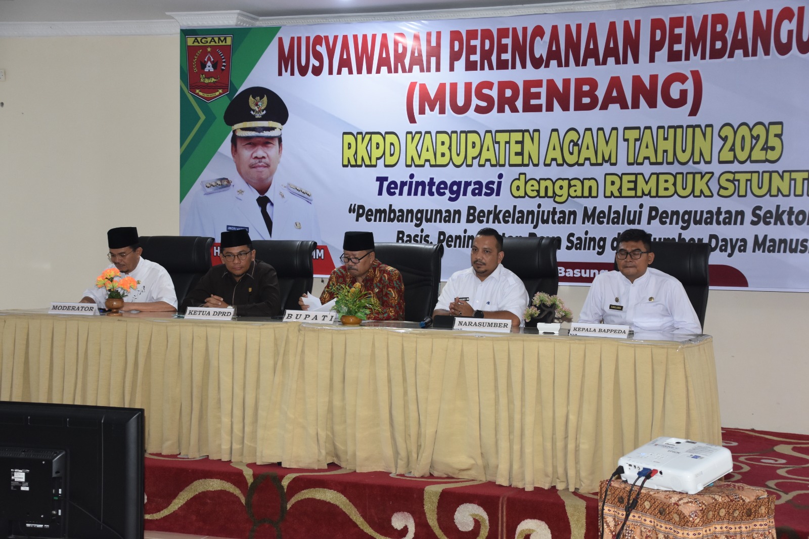Agam – Pemkab Agam secara simultan melakukan kegiatan perencanaan pembangunan sebagai perwujudan mencapai agam maju, dengan melaksanakan Musyawarah Perencanaan Pembangunan (Musrenbang) Rencana Pembangunan Jangka Panjang Daerah (RPJPD) Kabupaten Agam tahun 2025-2045, pada Selasa (2/4) dan dilanjutkan dengan pelaksanaan Musrenbang Rancangan Kerja Pemerintah Daerah (RKPD) Kabupaten Agam Tahun 2025, Rabu (3/4) yang langsung dibuka secara resmi oleh Bupati Agam, Andri Warman, di Aula Bappeda Agam.