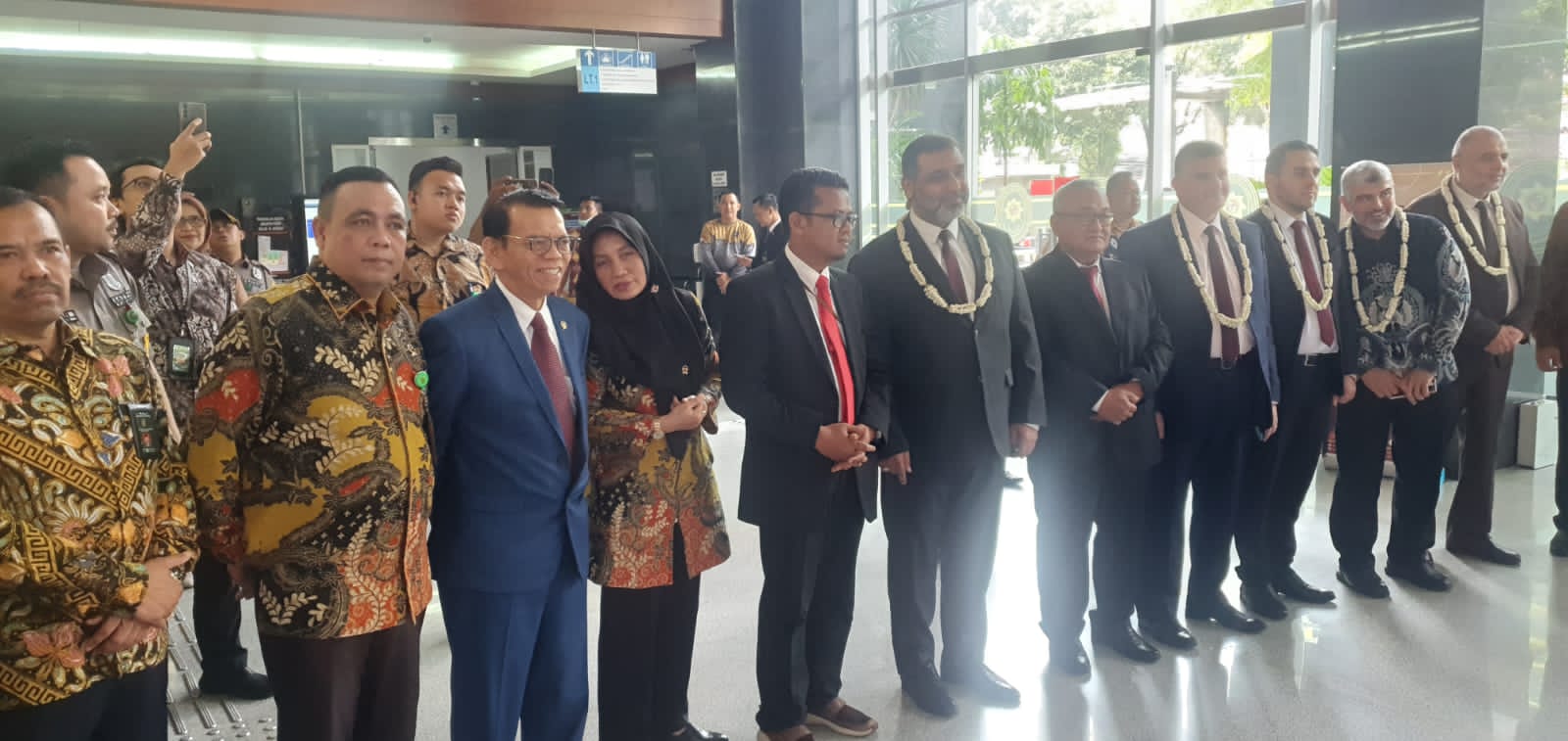 Metrotalenta.online–Ketua Dewan Tertinggi Peradilan atau Mahkamah Agung Palestina Dhiyauddin Al-Madhun menyambangi Kantor Pengadilan Negeri Jakarta Pusat, Jumat (14/7/2023) didampingi Hakim Agung RI Prof. Dr. Syamsul Maarif. Kedatangan Ketua MA Palestina Dhiyauddin Al-Madhun, bersama rombongan disambut Wakil Ketua PN Jakarta Pusat Dr. Henny Trimira Handayani. SH, MH dan jajarannya dengan prosesi pengalungan bunga dan sambutan khusus.