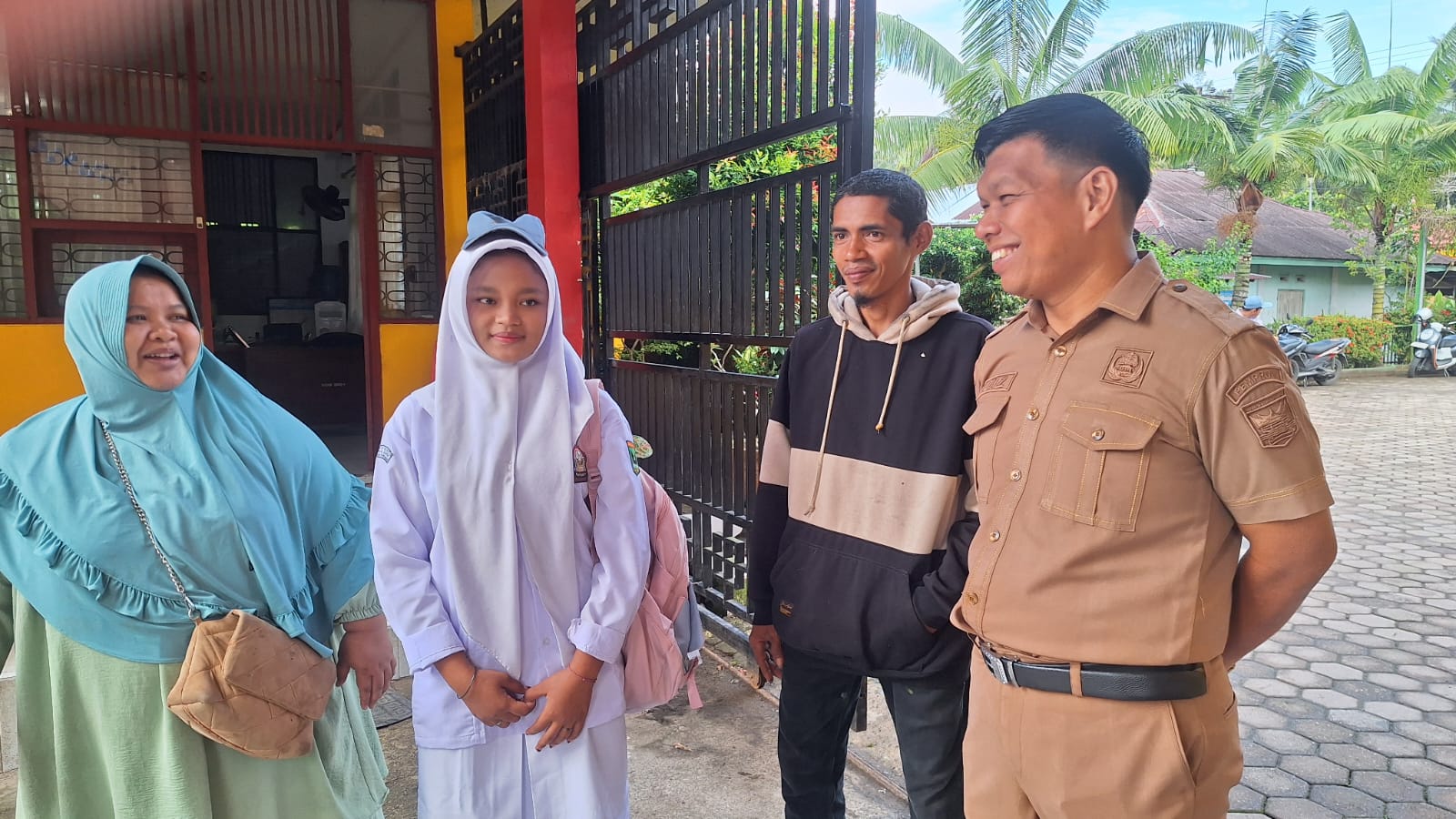 Hari ini ,Senin tanggal 2 Februari tahun 2026 ,siswi yang bernama Savira telah kembali belajar dan dia diantar oleh kedua orang tuanya kesekolah .