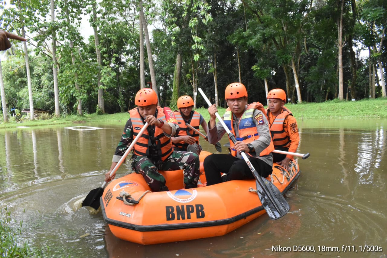 Kegiatan selain penyampaian materi oleh Kalak BPBD Kab.HST H.Budi Hariyanto dilanjutkan dengan praktek lapangan simulasi tanggap bencana alam banjir.(pendim1002).