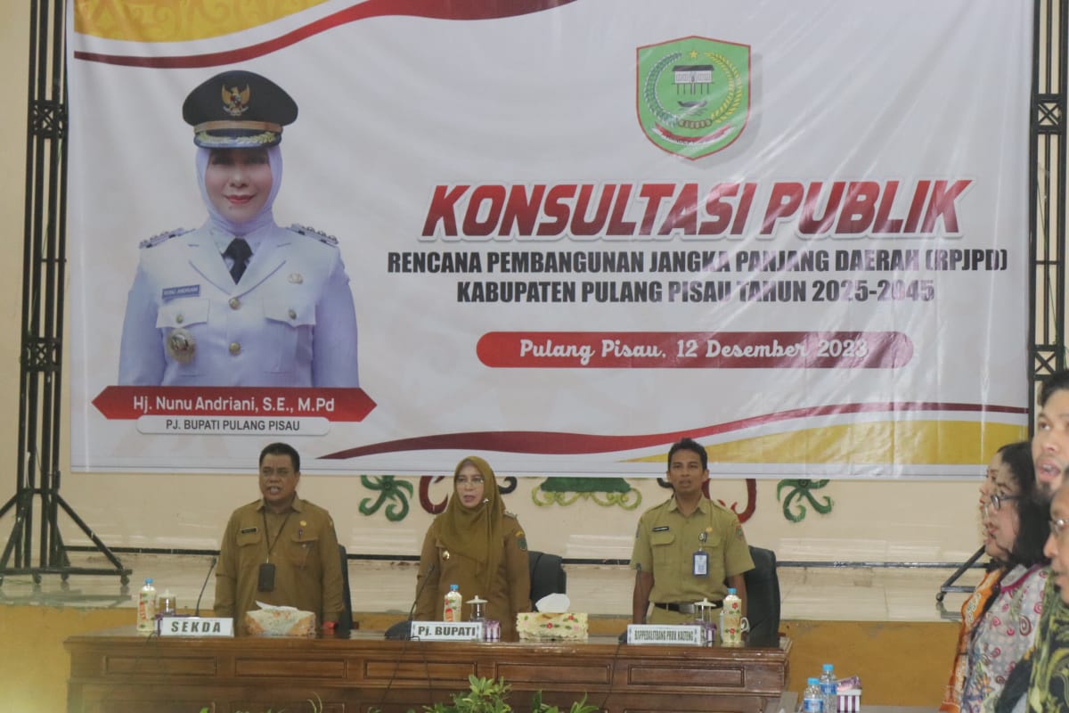 “Tahun 2025-2045.kegiatan ini hendaknya tidak hanya menjadi seremoni dan hanya menggugurkan kewajiban adanya forum konsultasi publik. rancangan awal hanya bersifat sementara dan masih terdapat banyak kekurangan. oleh karena itu untuk memperkaya muatan dan substansi, forum konsultasi publik menjadi sarana strategis untuk mengakomodir banyak masukan dari berbagai pihak. kegiatan forum konsultasi publik yang kita laksanakan hari ini merupakan bagian dari komitmen pemerintah kabupaten pulang pisau untuk membuka secara luas partisipasi dan keterlibatan seluruh pemangku kepentingan dalam perencanaan pembangunan daerah.