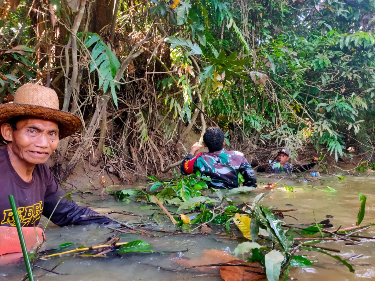 Lokasi pertama Serda Nasrudin bersama Bhabinkamtibmas dan masyarakat melaksanakan gotong royong pembersihan aliran sungai di desa Pengambau Hilir Luar, lokasi kedua Sertu Baharuddin bersama Apdes dan masyarakat melaksanakan gotong royong pembersihan saluran air/parit di desa Barikin dan lokasi ketiga Serda Harun bersama Bhabinkamtibmas dan masyarakat melaksanakan gotong royong pembersihan saluran air/parit di desa Andang,”tambahnya
